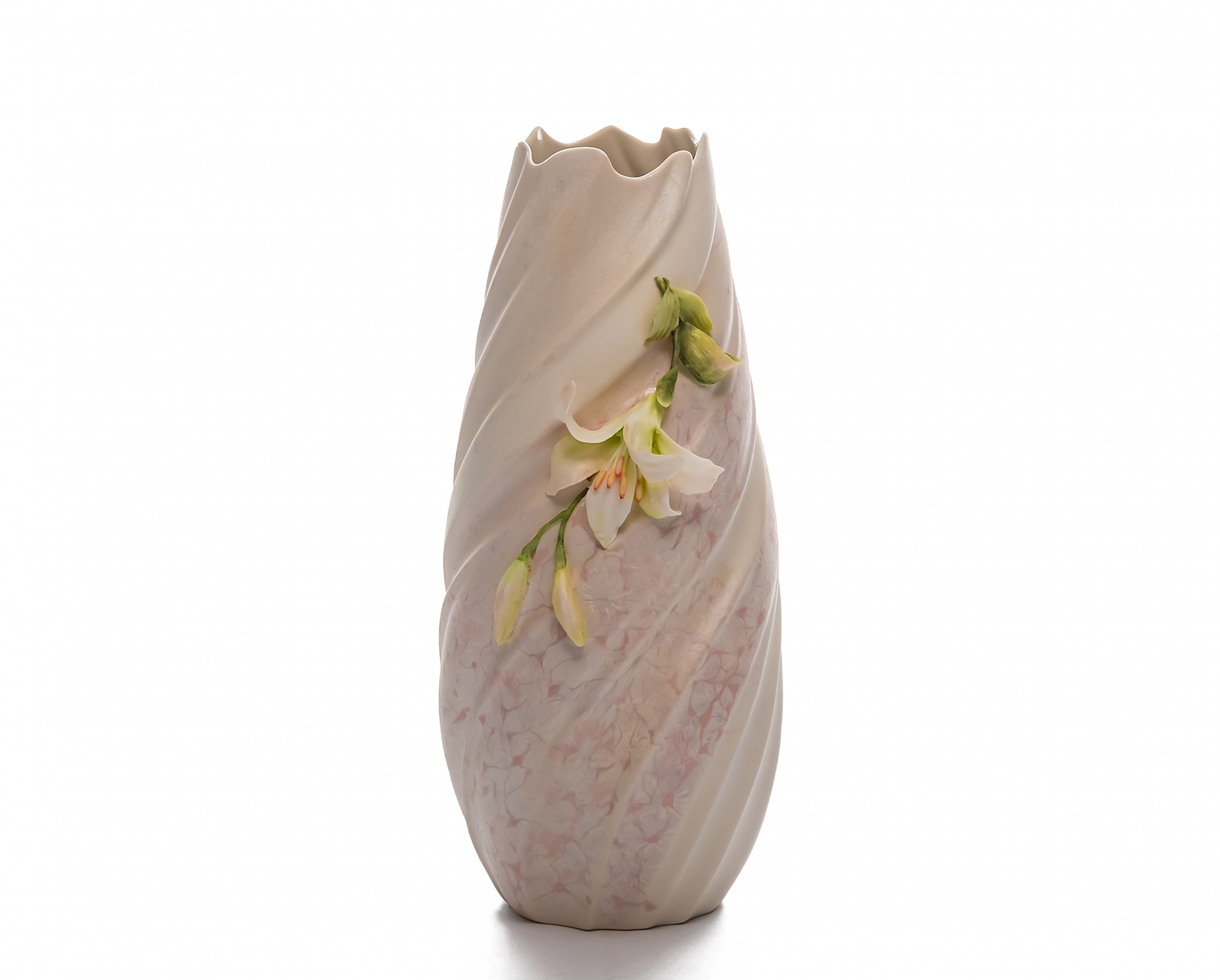Оформление: бисквит, глазурь, объемная лепнина, надглазурная роспись, краски металлик, шликерная роспись.