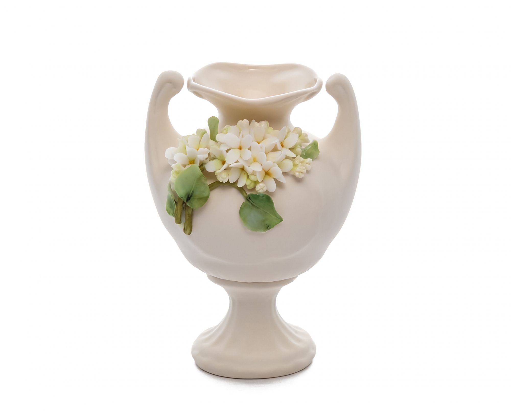 Оформление: бисквит, объемная лепнина, надглазурная роспись, краски металлик, шликерная роспись.